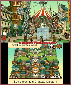Noch immer dirigiert Ihr den Professor von Schauplatz zu Schauplatz. Und zwar per Stylus. Ihr erkundet Dutzende Orte, die Stadt von Monte D'Or, örtliche Hotels, abgelegene Stätten, reist in Laytons Vergangenheit zurück und erledigt Rätsel sackweise. Ihr verfolgt polizeiliche Ermittlungen, treibt Gespräche (und davon gibt es sehr viele!) voran oder erfreut Euch einfach nur an der schicken Optik, die dieses Mal - eine Premiere! - in 3D daherkommt.