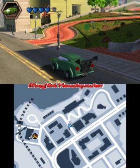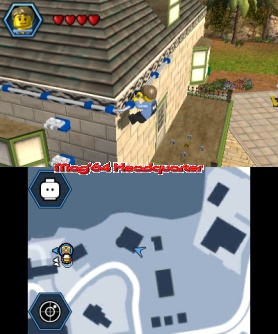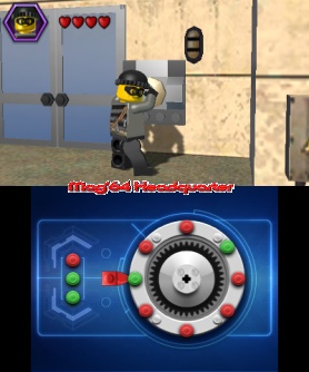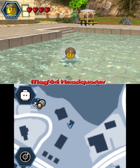 Dazwischen darf man als geneigter Lego Fan einmal mehr seiner Sammelleidenschaft frönen, ohne die kein Lego Spiel auf den Markt kommt. Egal ob das die Lego Steine angeht, Boni in Form der roten Steine oder aber auch versteckten Fahrzeugen. In dieser Hinsicht nehmen sich 3DS und Wii U Version inhaltlich nicht viel. Nur das man hier viel weniger davon bietet. Gesteuert wird Chase logischerweise mit dem Schiebepad, während man mit dem Steuerkreuz durch die Verkleidungen schalten kann. Kann man aber durchaus auch über den Touch Screen lösen. Die Darstellung ist wieder in der typischen Third Person Sichtweise umgesetzt, besticht aber durch eine nähere Kamera, welche die Action oft etwas intensiver macht. Anders als auf der Wii U geht der Spielverlauf hier hintereinander weg. Hat man beim großen Bruder viel Zeit, um sich den Unmengen an Nebenaufgaben zu widmen, so geht man hier eine Aufgabe an, löst diese und weiter geht es ohne Pause zur nächsten. Hemmt auch ein wenig den Entdeckerdrang, den man mit einem Open World Gameplay schon verspürt. Die 8 Verkleidungen im Spiel sind nun ebenfalls recht linear zu bekommen, sprich irgendwann kommt halt immer eine spezielle Aufgabe, in der man eine dieser Verkleidungen bekommt und natürlich gleich nutzen muss. Später im Verlauf zeigen euch entsprechende Symbole vor Objekten welche Verkleidung man anwenden muss. Dabei erlebt der Spieler das Ganze auch mit einem kompletten Jump'n Run Gameplay, wobei man sich um eventuelle schwierige Geschicklichkeitsaufgaben keine Sorgen machen muss. Entweder ist alles recht easy machbar, oder man wird sofort neu abgesetzt, wenn man mal ein Leben verliert. Einzig ein paar der Lego Steine werden euch abgezogen.