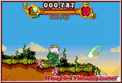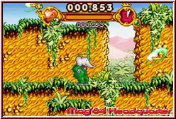 Die letzte wichtige Variante sind die Racerabschnitte. Mal zu Lande und mal im Wasser sieht man dabei das Geschehen aus der Vogelperspektive. Technisch zwar nicht anspruchsvoll hat man diesen Abschnitten eine angenehm zu steuernde Driftvariante spendiert. Auch hier gilt es wie überall auf den Strecken die Kronen einzusammeln und das Ende zu erreichen. Schade das man hier keinen Time Trial eingebaut hat. Was übrigens für das gesamte Spiel gilt. Zwar ist der Score Modus mittels der Kronensymbole ordentlich umgesetzt. Einen zweiten Modus über das Hauptmenu wo man nach Zeit und Scores loslegen könnte, hätte den Wiederspielwert durchaus gesteigert. So muß man dafür auf der Übersichtskarte die Level direkt nochmal anwählen. Über allem steht aber das man für das Lösen des Spiels zum einen nicht älter als 7 sein sollte und auch seinen Jahresurlaub dafür nicht einzuplanen braucht. Denn 3-4 Stunden sind zumindest für ältere Spieler schon hochgegriffen. Auf jeden Fall kein Spiel das ewig dauert. Hier hätte eben ein zweiter Spielmodus durchaus für Abwechslung gesorgt. So erlebt man zwar ebenfalls eine Mischung aus verschiedenen Gameplay Aspekten. Nur ist der Abenteuer Modus einmal durch, sinkt die Motivation für weitere Versuche. Ältere Spieler sollten hier eh keinen Gedanken verschwenden. Wie bei Miss Spider auf dem DS sollten sich hier jüngste Gamer Sprößlinge versuchen, wobei im Vergleich zum DS auf dem GBA eine ganz andere Konkurrenz Situation herrscht. Alternativen die ebenfalls wie Babar eine gelungene Steuerung bieten gibt es auf dem GBA auch für diese Zielgruppe reichlich.
