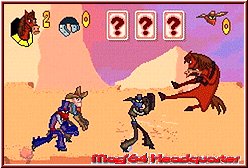 Sammelt Euer Weggefährte fünf Sattel ein, erhaltet Ihr ein Extraleben, die Stoppuhr erhöht die Zeit, welche Euch noch zur Verfügung steht, bis Ihr die Ziellinie zu überqueren habt. Weiterhin habt Ihr die Möglichkeit, einen Boost einzusammeln, der Euch kurzfristig zusätzliche Geschwindigkeit garantiert. Der Sheriffstern schenkt Euch bereits verbrauchte Lebensenergie zurück. Letztendlich geben Euch die Flügel die vorübergehende Fähigkeit, über Schlammpfützen hinweg zu schweben. Obwohl die Reit-Abschnitte in technischer Hinsicht hervorragend gelungen sind, sind sie einfach zu kurz und - wie der größte Teil des Spieles - zu einfach. In Buck's zweiter Rolle als "Street Fighter"-Kämpfer begibt er sich auf seine Hinterläufe und verdrischt seine Kontrahenten mit seinen Vorderhufen. Mit dem "B"-Knopf gibt Ihr den Schergen eins auf die Nuss, ein Angriff aus der Luft ist ebenso möglich wie die Attacke mit den Zügeln. Letztere lässt Eure Gegner taumelnd schwanken, somit habt Ihr leichtes Spiel, ihnen den Garaus zu machen. Des Weiteren dürft Ihr Eure Hinterläufe einsetzen, um sie den Wild-West-Bewohnern (Cowboys, angreifende "Fleischklopse", …) geschmeidig in den Unterbauch zu rammen.