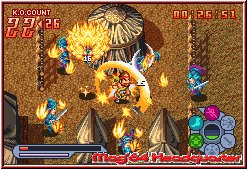 Allerdings ist das auf lange Sicht auch eine Schwäche des Spiels. Irgendwann kann es auch ein wenig stupide werden, wenn man immer wieder 40 Gegner und mehr wegsensen muß, ohne das sich am Kampfgameplay groß etwas ändert. Im Kampf selber wo es ja in Echtzeit zur Sache geht ist mit Taktik nicht viel. Hier zählt das eigene Button Gehämmer mehr als Überlegungen. Speziell in diesem Teil machen mir die Rundebasierten Spiel wie ein Tactics Advance mehr Spaß, da man einfach mehr Eingriffsmöglichkeiten hat. Das man dennoch hier bei allem Königreichen 30-40 Stunden verbringt zeigt wieviel Gegner euch bevorstehen. Dennoch gefällt mir im gesamten die Rundebasierte Kampfvariante besser. Man muß hier speziell selber wissen ob einem das Spielprinzip gefällt. Taktik ist wenn auf der Karte vorhanden, wie man seine Wege geht, wobei auch hier schade ist das die Verbündeten selber agieren. Auch hier hätte ich mir gewünscht das man diese mit über die Karte dirigiert und damit den Taktik Gedanken verstärkt. Wiegesagt schlecht ist das ganze nicht, aber kann durchaus eintönig werden und schwer. Und wer dann das Speichern vergißt und doch mal an einen harten Gegner gerät macht erstmal eine längere Pause. ;-))