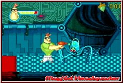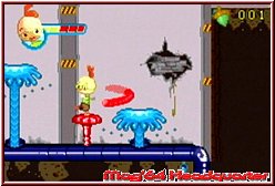 Die Level selber sind dabei teilweise alles andere als linear und bieten ausreichend viele Verzweigungen, in denen man nach Secrets suchen kann. Dabei bieten diese Level gewohnte Plattform Hüpferei wie sie die meisten Jumper Spiele bieten. Keine unfairen Stellen sorgen dabei für frustfreies Spielen. Junior kann zudem Klettern und per Power Sprung auch höhere Bereiche erklimmen, was das Level Design dadurch schon etwas vielschichtiger macht. Das Ziel in den Leveln ist es meist einen bestimmten Punkt oder Charakter zu erreichen. So macht der Spieler auch Bekanntschaft mit den beiden anderen Helden des Spiels. Commander Ace und Luigi Fortello kümmern sich dann meist um die Alienlevel in deren Umgebungen. Hintergrund ist wie so oft das diese bestimmte Aktionen können, die einzigartig und dem Level jeweils angepaßt sind. So kann Ace mit seiner Kraft Objekte zerstören an denen Junior scheitert oder mit seinen speziellen Schuhen an dafür vorgesehenen Wänden und Decken entlang laufen. Dabei findet man die anderen Charaktere wahlweise als temporäre Variante vor und Junior kann sich innerhalb seiner Level mal kurz in Ace verwandeln, oder Ihr spielt Level komplett mit den 3 Helden. Ace ist meist auch der welcher sich den ebenfalls enthaltenen Boss Gegnern stellt. Für Abwechslung im Jumper Gameplay sorgen nun 2 Dinge. Zum einen dürft Ihr in der Schule Völkerball spielen, das die Sicht wie z.b. in einem Dodgeball für den GBA aus einer schrägen Sicht von der Seite zeigt. Dabei ist es hier das Ziel einen Gegner mittels Wurf Energie aus seiner Lebensleiste zu ziehen. Zweiter wichtiger Punkt sind die Rennspiele. In diesen Leveln geht es auf Strecken a 4 Runden darum möglichst zu gewinnen. Hier zeigt man euch das Geschehen ebenfalls aus einer Iso Sicht aus der Ferne. Zwar vom Speed her nicht sonderlich hoch ist die gelungene Driftsteuerung dennoch etwas das Spaß macht und unterhält.