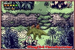Dabei ist das ganze so angelegt das die jeweils dritten Aktionen per B-Taste erst gefunden werden müssen. Später kann Jack so einen Speer benutzen um entfernte Schalter zu treffen. Link's Bumerang oder Bogen läßt grüßen. ;-) Carl findet die Fackel, mit der Ihr viele Rätsel lösen könnt und Ann bekommt mit dem Enterhaken die Möglichkeiten normal nicht erreichbare Stellen zugänglich zu machen. Aber kümmern wir uns erstmal um die beiden männlichen Helden. Denn mit denen spielt Ihr fast alles auf Skull Island. Um nun an den entsprechenden Orten die Fähigkgeiten beider zu benutzen drückt man einfach die L-Taste. Dadurch wechselt man die Charaktere durch und der eben noch passive Dödel wird nun von euch gesteuert. Das Rätselgamplay in diesem Spiel eine große Rolle spielen wird merkt man anfangs an der Teilen Funktion. Laufen beide oder alle drei normalerweise im Team umher, so kann man per Select 1 oder 2 stehen lassen und mit dem aktiven allein durch die Gegend stampfen. Rätsel über 3 Ecken sind so möglich und warten auch auf euch. An Anzeigen habt Ihr oben links die Energieleisten der Charaktere. Auch schön das man diese duch das Finden von speziellen kleinen Objekten erweitern kann. Denn gekämpft wird auch genug. Wobei hier auch alles dabei ist von einfachen Käfern bis hin zu diversen Sauriervarianten. Um diese aufzufrischen lassen manchmal Gegner Pickups liegen, oder Ihr senst mit Jack's Machete Pflanzen weg und findet darunter etwas. Geht dann doch mal einer der Charaktere drauf nutzt man im Spiel diverse Rücksetzpunkte, die sehr oft zu finden sind und vor allem in Sachen Dungeon Gameplay an die Zelda Spiele erinnern. Sehr gelungen finde ich ein weiteres Feature. Waffen und Objekte die "verschossen" werden können habt Ihr nicht unendlich zur Verfügung. Das gilt für Granaten, wie für Speere oder auch die Fackeln.