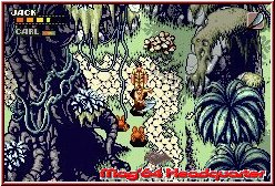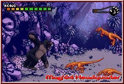 Die Unterschiede zu den anderen Versionen sieht man sofort nach dem Vorspann, der hier in kleinen Sequenzen mit Sprechblasen versehen ist. King Kong auf dem GBA ist ein Adventure Spiel im Stile eines Indiana Jones. Im Verlauf darf man sich aber auch auf einiges Gameplay freuen, das sonst nur Link in seinen Abenteuern vorbehalten ist. Die Mischung aus beiden, gepaart mit einigen interessanten Features heben den Spielspaß in diesem Game. So beginnt das Spiel auch auf Skull Island, wo Ihr zunächst die Entführung der guten Ann miterlebt. Danach müßt Ihr sie mit Carl und Jack finden, befreien und das rettende Schiff nach New York erreichen. Denn nur auf Skull Island spielt Ihr in der GBA nicht. Dabei ist der Blickwinkel auf das Geschehen sehr typisch für ein GBA Adventure. Aus der Iso Sicht schräg von oben betrachtet Ihr das Geschehen. Das Feature das Ihr 2 und später auch alle 3 steuert wirkt sich hier auf die Steuerung aus, die recht vielschichtig und durchdacht designt wurde. Stehen also z.b. Jack und Carl nebeneinander so steuert Ihr immer einen der beiden, während der andere nebenher läuft. Wie es sich für ein Adventure gehört habt Ihr mit Geschicklichkeit in Form von Springerei hier nichts am Hut. Dennoch sind alle Taste belegt. Das beginnt damit das Ihr mit der A-Taste beim aktiven Charakter Aktionen wie Schalter betätigen und Gespräche auslöst. Die B-Taste dient dem Benutzen der gerade aktiven Waffe. Jeder der 3 Charaktere besitzt dabei 3 verschiedene Fähigkeiten, die man nun per R-Taste durchschalten kann und die oben rechts im Screen als Symbol angezeigt werden. So kann Jack anfangs z.b. eine Machete und eine Waffe benutzen, während Carl als einziger schwere Gegenstände verschieben kann oder Granaten werfen kann. Ann, die allerdings erst am Ende des Gameplay's auf Skull Island mit von der Partie ist kann als einzige Heilen und später Kong auch herbeirufen.