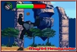 Den Entwickler Namen Skyworks sollten sich GBA Spieler durchaus mal einprägen. Aktuell einiges von den Jungs im Test zeigt man vielfach wie sehr schlechte Spiele aussehen und Vorurteile sind hier sehr schnell aufgebaut. Der schlechte Eindruck zeigt sich schon bei den Rahmenbedingungen. Zunächst wird das Spiel nur komplett Englisch präsentiert, eine Batterie sucht man hier vergebens und Paßwörter sind mal wieder an der Tagesordnung. Für einen Spieler gemacht ist die Story wie schon erwähnt etwas anders gestrickt, als der geneigte King Kong Fan zunächst vermutet. Kong ist ein Riesen-Affe, dessen Tod bislang eine Legende war und dessen Wiedergeburt ein wohlbehütetes Geheimnis ist. Durch die Verwendung von Kongs DNA konnte ein identischer Riesen-Affe erzeugt werden, der die gleichen gigantischen Kräfte besitzt. Aber nun wird eine uralte Prophezeiung wahr und die versunkene Stadt Atlantis taucht wieder aus dem Meer auf! Sie wird von der bösen Königin Reptilla beherrscht, die Kong zum König von Atlantis machen will, um ihn zu versklaven und für ihre Zwecke zu benutzen. Einer der Helden des Spiels, Jason, versucht Kong von der Boshaftigkeit Reptillas zu überzeugen, um Atlantis und Kong zu retten, doch die Vorstellung König zu sein, ist für Kong sehr verlockend …