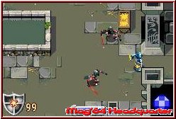 Die Schwierigkeit wenn man dies bis zum 8 Level so nennen will liegt darin nicht draufzugehen und das Ende zu erreichen. Man läuft die Gänge und Wege der einzelnen Locations an und metzelt diverse Gegner nieder. Auch hier warten verschiedene auf euch, die wahlweise Nah und auch Fernattacken einsetzen. Manche geben Wege zu Schaltern frei, während andere Items fallen lassen. Besonders wichtig ist links unten die Schildanzeige, die eure Lebensenergie anzeigt. Ist diese leer wird's nervig. Denn Rücksetzpunkte gibt es keine. Mission nicht bestanden und Ihr dürft von vorn beginnen. Einzig wenn Ihr in einem Level einen Locationwechsel vorgenommen habt startet man nicht ganz neu. Nur ist das selten der Fall. Wobei man hier sagen muß das bis zum 8. Level dies eigentlich nicht das Problem ist und der Schwierigkeitsgrad der Zielgruppe angemessen ist. Heftig wird es dann ab Level 8, wo die Gegneranzahl und Arten durchaus knackig werden können und man mit dem Ableben Bekanntschaft macht. Trotzdem ist die Spielzeit mit 5-7 Stunden für ältere Spieler kein Killerfeature.