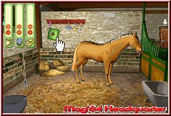 Zu Beginn des Spieles wählt Ihr ein Pferd (Stute oder Hengst) und entscheidet Euch für unterschiedliche Fellfarbe. Als Euer Alter Ego Marie befindet Ihr Euch direkt auf dem Hof von Herrn Straub. Aus einer "Von-oben"-Perspektive steuert man die Protagonistin zu den gewünschten Örtlichkeiten. Auffällig vom Start weg ist die unpräzise Steuerung, die erst nach kurzer Verzögerung anschlägt. Die eigentlichen Schauplätze stellen zunächst die Stallungen dar, immerhin solltet Ihr Euch zuerst einmal einen Überblick den Hof verschaffen. Im Stall angekommen trefft Ihr auf Euer Pferd, welches Ihr hier aus der Ego-Perspektive mit wenigen Handgriffen versorgen könnt. Eine virtuelle Hand erledigt für Euch Aktionen. So mistet Ihr den Stall und streut frisches Stroh aus. Zusätzlich dürft Ihr hier dem Pferd die Hufe auskratzen, es striegeln und bürsten, den Trog voll Wasser füllen, sowie Futter holen. Drei Anzeigen geben Euch Klarheit über die erledigten Aufgaben im Stall.