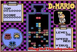 Bevor das eigentliche Spiel beginnt erwartet den Spieler ein Art Setup Bildschirm, in dem er die Schwierigkeit des Spiels extrem anpassen kann. Lobenswert für Einsteiger und Cracks, da beide Zielgruppen angesprochen werden. 3 Rubriken kann man hier einstellen mit denen man das Spiel zunächst beginnt. Das beginnt bei der Geschwindigkeit wie später Teile fallen sollen, wieviele Viren im Bildschirm auftauchen und welche Musikvariante im Hintergrund dudeln soll. Bevor wir hier aber den zweiten Schritt vor dem ersten tätigen stellen wir das Spielprinzip erst einmal vor. Wie bei einem Tetris ist die reine Spielfläche angeordnet. In der Mitte der Querschnitt einer Flasche dient dazu selber zu agieren, während drumherum Anzeigen für das momentane Level, die Viren, dem Speed und dem Score untergebracht sind. Zum Spielen selber sind das Steuerkreuz sowie die A unf B Taste wichtig. Das Ziel des Spiels ist es auch hier durch das Bilden von Reihen den Bildschirm zu leeren. Allerdings etwas anders als man dies in einem Tetris macht.
