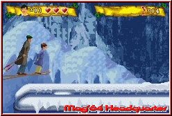 Zunächst haben die Entwickler ihre Hausaufgaben gemacht. Der Polarexpress auf dem GBA kommt in komplett deutscher Sprache daher und bietet einen Batteriespeicher, welcher 3 Savegames erlaubt. Das Hauptmenu ist ähnlich schlicht wie auf dem GCN und bietet neben dem Spielstart und der Wahl seines Speicherplatzes die Optionen, welche neben Soundeinstellungen auch die Anpassung der Helligkeit ermöglichen. Für Spieler mit dem alten GBA immer ein Vorteil. In Sachen Story hält man sich auch auf dem GBA an die Geschehnisse aus dem Film. Jedes Jahr auf's neue nimmt der Polarexpress ein paar ausgewählte Kinder mit auf die Reise zum Nordpol um den Weihnachtsmann zu treffen. In diesem Jahr stößt auch ein kleiner Junger dazu, der schon fast nicht mehr an diesen glaubt und auf der Reise zum Nordpol dieses Feeling wieder erlangt. Ihr als Spieler übernehmt die Rolle dieses Jungen und erlebt die Reise im Zug wie auch die Geschehnisse am Nordpol wie im Film nun auch spielerisch. Dabei hält sich auch Tantalus spielerisch in 2 Bereichen an den Storyfaden, während man sich in Sachen Gameplay technisch bedingt natürlich umstellen muß. Im Gegensatz zum GCN aber hier nichts schlechtes.