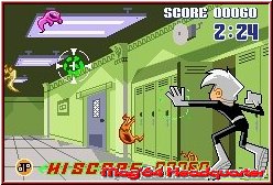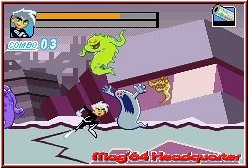 Die Welten-Abschnitte werden in klassischem 2D dargestellt, als Gegner erwarten Euch rund 30 Geister-Wesen, die zumeist zielstrebig auf Euch zufliegen. Mit ein paar Hieben schaltet Danny diese problemlos aus. Obwohl das Aussehen der fliegenden Farbkleckse unterschiedlich ist, ist deren Verhalten oftmals sehr ähnlich. Eine wirkliche Strategie Geister auszuschalten, benötigt man in "Danny Phantom - Sein grösster Gegner" so gut wie nie. Selbst die Bossgegner verlangen Euch nicht sonderlich viel ab. Zwar sind ihre Attacken in der Ausführung verschiedenartig, grundsätzlich genügt jedoch der eine oder andere Druck auf den "B"-Knopf (Attacke), um hier für Ruhe zu sorgen. Wesentlich effektiver - wenn eigentlich auch überflüssig - sind Geistergeräte, die in Putzkübeln oder Schildern verborgen sind. Mit einer Anti-Ecto-Doppelklinge schnetzelt Ihr Euch ein gutes Stück leichter durch die Geisterhorden, dank der Fenton-Brille (verschießt Geisterstrahlen) wird das Bildschirmleben Eurer Widersacher radikal gekürzt. Spezielle Plasmastrahlen kann Danny unverblümt in eine Gruppe herannahender Geistwesen jagen, weitere nützliche Upgrades erhöhen Dannys Offensive sowie Defensive. Selbst die Bewegungsgeschwindigkeit ist abhängig von Items, die Ihr im Laufe des Spieles einsammelt.