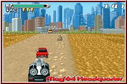Die Grundsteuerung ist dabei bei allen gleich. Man läuft per Kreuz nach rechts, ohne das man die Level wieder zurück gehen könnte und kann nun per A-Taste springen und mit der B-Taste Attacken gegen die Gegnerschaft einsetzen. Schnell und gut in der Umsetzung sucht man aber Schlagvielfalt mit der Lupe. Simples Ducken und Rollen sind Ausnahmen wie das Springen in der Luft samt einem dort ausführbaren Angriffsmove. Bei den Rangerleveln wo eh nicht jeder alles kann schrumpft das ganze also oft auf simples B-Tasten Gehämmer zusammen. Ausnahme ist der Chef der Space Patrol Delta und das letzte Level. Er kann alles und das Gameplay ist dort mal etwas vielschichtiger. Wiegesagt nichts schlechtes, aber eben ein wenig simpel gehalten. Unterstützt werdet Ihr dabei von einem Leben und Gesundheitsfeature. Oben links im Screen sichtbar habt Ihr eine bestimmte Anzahl Leben zur Verfügung und solltet dabei auf die eigene Energie achten, die aber auch erst bei den Boss Gegner wirklich mal in Gefahr gerät. Dazu findet man ein Specialanzeige, welche nun die Rangerspezifischen Moves ausführbar macht. So kann man eben Hindernisse mit R zerstören oder das gleiche als Move bei einem Boss anwenden. Folge ist eine sofort leere Special Anzeige, die sich aber selbsttätig und recht fix wieder füllt. Rücksetzpunkte hier und da machen die Level beim Ableben nicht zu zäh, auch wenn man wirklich viel Unsinn machen muß um bei den normalen Gegnern mal draufzugehen. Diverse Med Kits die man ab und zu findet entschärfen das ganze zudem noch. Abwechslung bringen nun die Rennspieleinlagen und MegaZord Kämpfe die wohl in keinen Power Rangers Spiel mehr fehlen dürfen. Dabei sind die Rennspieleinlagen technisch sehr einfach gehalten und Ihr steuert die Gefährte nicht in Rennen an sich, sondern fahrt auf einem scrollenden Untergrund nach vorn und weicht dabei Geschossen aus oder agiert selber. Ziel ist es hier meist eine bestimmte Zeit durchzuhalten um einen imaginären Punkt innerhalb des Gebietes zu erreichen, wo danach das nächste Action Level wartet. Ihr könnt in den Rennspielteilen auch Springen um Hindernissen auszuweichen, was natürlich normale Rennspielkost nicht unbedingt zuläßt.