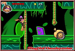 Der Angriff der Spielzeugroboter bringt zunächst eine durchaus frische Musikuntermalung mit, die sich irgendwie angenehm vom GBA Einerlei abhebt. Zu hören schon zu Beginn bei der Einstimmung in das ganze via kleinerer Comic Sequenzen. Hier erlebt Ihr den Beginn der Story und die Gefangenname der 5 Helden Spongebob, Tak, Jimmy Neutron, Danny Phantom und Timmy Turner. Bevor man nun das Spiel beginnt erscheinen plötzlich mit Cosmo & Wanda zwei weitere Helden aus dem THQ Universum. Ihr als Spieler habt nun die Möglichkeit über die beiden einen der fünf Gefangenen zu befreien. Euch steht dabei völlig frei wen und startet mit diesem das eigentliche Spiel. Das heißt zum einen das Ihr das ganze 5x spielen dürft und bedingt durch die 5 Helden immer neue Wege und Möglichkeiten an die Hand bekommt. Klingt zunächst sehr genial, hat aber neben Stärken auch ein paar Schwächen. Schauen wir uns zunächst mal das Gameplay an. Ich für meinen Teil habe zunächst den Helden der Serie befreit - Spongebob. Sein Name steht auf der Packung, also ist er auch der Erste der befreit wird. ;-) Sobald Ihr ihn also aus seinem Käfig befreit habt ist es nun das Ziel Schlüssel zu finden um die jeweils anderen 4 Helden zu befreien. Für jeden Helden gibt es im Spiel auch eine Welt plus einem Endlevel wo man dem Bösewicht der Story das Fürchten leert, wobei das große Ziel neben dem Finden der Schlüssel das Besiegen der bösen Spielzeug Zwillinge darstellt, die am Ende der Charakterwelten warten. Startet man also die erste Welt, egal mit welchem Charakter zeigt sich schnell das eigentliche Grundgameplay. Der Angriff der Spielzeugroboter ist auf dem GBA ein reiner 2D Jumper, der allerdings mit ein paar interessanten Aspekten daherkommt. Zunächst ist die Grundsteuerung bei allen Helden gleich.