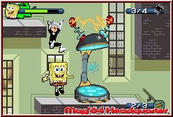 Dabei haben die Entwickler auch hier wieder an die angepeilte Zielgruppe gedacht und präsentieren dem Spongebob Fan ein komplett deutsches Spiel. Negativ ist allerdings die Tatsache das man Spielfortschritte mal wieder per Paßwörter sichern muß. Auch die GBA Version bietet die etwas andere Story des ganzen, die auch auf Nintendo's Kleinem durch die Ansammlung von 4 Helden lebt. Der hinterhältigste Plan, der jemals das Licht der Nicktoons Welt erblickte, nimmt Gestalt an. Professor Calamitous hat Plankton, Vlad und Crocker rekrutiert, um eine Gruppe mit dem Namen "Syndikat des Bösen" zu bilden. Die fiesen Vier wollen die Welt übernehmen und verwüsten dabei Retroville, Amity Park, Dimmsdale und Bikini Bottom! Doch sie haben ihre Rechnung ohne Jimmy Neutron gemacht. Das Genie schart seine eigene Nicktoons Gang um sich. Jimmy, Timmy, Danny und SpongeBob Schwammkopf bündeln ihre Kräfte, um das Syndikat des Bösen zu stoppen und nebenbei auch noch die zerstörerische Apokalypse-Maschine. Das heißt zunächst das eigentlich 4 Serien aus der Nickelodeon Armada hier Einzug halten und Ihr wie auf dem DS die 4 Hauptcharaktere übernehmt und durch das Abenteuer steuern werdet.