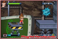 In allen Level gleich ist die Tatsache das Ihr immer zu zweit durch die Gegend lauft. Einer der Charaktere wird dabei gesteuert, während der andere CPU gesteuert mit euch mitläuft. Allerdings kann man zwischen beiden auch per L-Taste durchwechseln und auch trennen. So kann man später eine Vielzahl der Rätsel lösen. Man kann so praktisch einen der beiden am Start stehen lassen, und mit dem anderen durch das Level laufen. Schaltet man um bleibt nun der andere am eben noch erreichten Punkt stehen und man holt den anderen nun nach. Auch wenn diese Variante nicht so oft vorkommt ist es dennoch möglich. Allen 4 Charakteren gemein sind nun die Grundaktionen. Ihr könnt per A-Taste einen Sprung samt Doppelsprung Variante ausführen und mit der B-Taste Angriffe in Form von Geschossen auf die zahlreichen Gegner loslassen. Was das Spiel nun von vielen simplen 2D Jumpern abhebt ist das Feature das eben jeder eine bestimmte Aktion an, mit deren Hilfe man die Aufgaben erst lösen kann. Danny Phantom z.b. kann sich per R-Taste transparent machen und bestimmte Mauern durchdringen. Jimmy Neutron ist der Jet Pack Dödel und kann seitlich Entfernungen überwinden, während Timmy Turner mittels Ballons große Höhen überwinden kann. Zu guter letzt ist da noch Spongebob der nun wiederum durch kleine Lücken gelangen kann. Erstens sind all diese Dinge wichtig um allein die sammelbaren Items zu finden, die oft in Ecken versteckt sind die nur per Special eines Charakters geholt werden können. Um nun innerhalb der Level auf neue Hindernisse reagieren zu können findet man in regelmäßigen Abständen kleine Teleporter, mit denen man jederzeit in das Charakter Menu kommt und sein Team teilweise oder komplett ändern kann. In diesem Zusammenhang gibt es einen Punkt der mir nicht so sehr gefällt. An sehr markanten Stellen findet man immer Energie Items für die Specials, die man nicht ewig einsetzen kann. Eine blaue Leiste am unteren Bildschirmrand zeigt euch diese immer an.