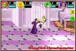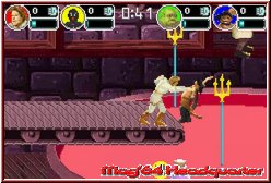 Soweit so gut. Leider bietet das Spiel aber schon in diesem Modus viel zu viel Anlaß zur Kritik. Kleinerer Punkt ist z.b. das man per Hand nicht zurück zum Hauptmenu kommt. Entweder man macht den GBA aus und wieder an, oder läßt sich manchmal langwierig erledigen. Wobei ich hier das positive Gegenstück nicht verschweigen will. Schafft Ihr es nicht ein Ziel als erster zu schaffen und somit eine Stage vorzurücken, dürft Ihr Dank unendlicher Continues das ganze gleich nochmal versuchen. Nur leider will man das in diesem Spiel einfach nicht. Zunächst stört die sehr hektische Bewegung der Charaktere, die oftmals kontrolliertes agieren unmöglich macht. Dazu kommen etwas unglückliche Animationen, die sehr abgehackt aussehen. Größter Klops ist allerdings die Gegner KI. Sie sind immer schneller als Ihr und kämpfen auch besser. Ich habe mir mal den Spaß gemacht mit verschiedenen den Story Modus zu spielen. Einmal habe ich sie so erlebt als ich sie gesteuert habe und eben um sie im anderen Versuch als Gegner zu haben. Trotz hektischer Bewegung ist der CPU Shrek nicht mit meinem gesteuerten zu vergleichen. So schnell wie der Gegner einem manchmal zusetzt kann man kaum reagieren, während er selbst gesteuert irgendwie keinen Stich sieht. Mit der Zeit nervt sowas doch sehr und läßt den Spaßpegel immer weiter sinken. Flugkurven bei Sprüngen oder gewollten Abstürzen sind sehr mäßig und eng umgesetzt. Dazu das kleinste Richtungsänderungen gerade am Boden wieder zuviel des guten sind und man nicht dort landet wo man hinwollte. Man gewinnt zwar oftmals die Kämpfe, fragt sich aber dennoch wie man das gerade geschafft habe. Dem Spiel fehlt einfach das kontrollierte Gameplay. Die Hektik überträgt sich und man hämmert mit der Zeit einfach auf die Tasten, ohne sich Gedanken über sein Tun zu machen. Das darf nicht sein.