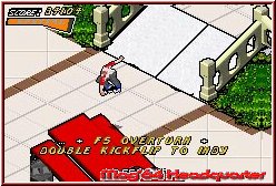 Hat man also die Einführung hinter sich gebracht geht die Reise in Hollywood so richtig los. Hier entläßt man euch in das Spiel und das System zeigt sich dem Spieler. Wer die DS Version einmal gespielt hat glaubt in einer Prähistorischen Tony Hawk Zeit angelangt zu sein. Doch wieder ein Vergleich.... ;-)) Denn was die Sichtweise angeht und wie sich das Game selber spielt ist gegenüber den Vorgängern eigentlich nicht verändert worden. Doch wie kommt man nun vorwärts im Spiel? Zunächst sucht man sich innerhalb der Locations Charaktere die einen Kreis unter ihren Füßen haben. Alles dabei wieder ohne Zeitdruck. Dabei ist die Sicht auf das Geschehen wie bei allen TH Spielen auf dem GBA wieder in der Iso Sicht gehalten. Das Thema 3D ist hier also nicht enthalten. Erreicht Ihr so einen Charakter drückt man die L-Taste und er erzählt euch ein bißchen was und gibt euch einen Auftrag. Wie immer reicht das vom knacken eines Scores, der Ausführung bestimmter Tricks an bestimmten Orten oder dem Einsammeln kleinerer Items, die irgendwo herumliegen. Hier setzt ein wenig Kritik an und man wünscht sich auch später im Verlauf öfters mal eine Karte oder zumindest eine grobe Richtungsanzeige. Die Zeit die man öfters mal einfach nur für das Suchen von Orten oder Charakteren verplempert ist relativ hoch. Das ganze wird später auch dadurch verschärft das man solche Suchen&Finden Aufgaben Locationübergreifend erlebt. Denn einige der 7 im Story Modus enthaltenen Locations sind miteinander verbunden und durch Straßen oder alternative Wege erreichbar. Bekommt man nun so einen Auftrag und erreicht die neue Location, so sucht man sich gerne mal dumm und dämlich. Ich konnte mir manchen Seufzer manchmal nicht verkneifen wenn man euch die Location nur anhand von Himmelsrichtungen angibt. Einzig die Locationübergänge merkt man sich logischerweise mit der Zeit und werden dann auch durch spezielle Pfeilsymbole angegeben.