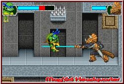 Das eigentliche Hauptspiel, der "Story-Modus", ist in insgesamt fünf Welten mit je sechs Sublevels unterteilt, wobei im Schwierigkeitsgrad "einfach" lediglich drei dieser Welten besucht werden können. Um in "normal" sowie "schwer" neue Welten frei zu schalten, bedarf es dem Einsammeln von Kristallen (100 pro Welt). Auf dem einfachsten der drei Schwierigkeitsgrade geht Euch das Thema "Kristalle sammeln" noch am Schildkrötenpopo vorbei, auf "normal" müsst Ihr bereits 85 von 100 glitzernden Objekten Euer Eigen nennen können, um in die nächste Welt zu gelangen. Da das Spiel aber relativ schnell sehr anspruchsvoll wird, kann es gut möglich sein, dass bereits der mittlere Schwierigkeitsgrad für Euch Endstation bedeutet. Teilweise müsst Ihr gewisse Gegner besiegen, um an kristalline Steine heran zu kommen, teilweise waghalsige Fallen durchwandern, um in den Besitz eines bläulichen Steines zu kommen. Die Lebensenergieanzeige ist relativ schnell leer, Power-Ups in Form von kleinen Mini-Schildkrötchen eine Seltenheit. Daher bedeutet es häufig am Bildschirmtod zu sterben und das Level von Anfang an zu beginnen. Im Vorgänger lag der Schwerpunkt noch nicht auf dem Einsammeln der Kristalle, dieser Punkt ist es dann auch genau, der dem Spiel - im Gegensatz zum Vorgänger - das Genick bricht. Was aber nicht bedeuten soll, dass "Teenage Mutant Ninja Turtles 2 - Battle Nexus" schlecht wäre. Eure Kröten haben alle unterschiedliche Angriffstechniken, wobei diese letztendlich auf dasselbe heraus laufen - Prügeln ohne Kompromisse. Ganz gleich ob Ihr mit Michelangelos "Breakdance" oder Donatellos "Kreisel-Wirbel" attackiert, das Resultat ist zumeist ähnlich. Gewisse Abschnitte können jedoch nur von bestimmten Charakteren in Angriff genommen werden, beispielsweise dann, wenn Michelangelo seinen "Nunchaku-Propeller" einsetzt, um an weiter entfernte Stellen zu gelangen. Letztendlich ist der Wechsel der Charaktere nicht sonderlich ausgeprägt, da zumeist auch nicht notwendig. Die meiste Zeit verbrachte ich mit Donatello, nur selten bestritt ich gewisse Abschnitte mit einem seiner drei Brüder.
