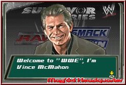 Wählt man diesen an wählt Ihr wenn man so will einen von 2 Story Wegen die möglich sind. Wahlweise könnt Ihr euch in der Smackdown und der Raw Fraktion betätigen. Einmal einen von beiden Wegen gewählt könnt Ihr danach nicht mehr wechseln. Einerseits weil nur ein Batteriesave zur Verfügung steht und zum anderen weil innerhalb der Story erst eine Seite komplett durchgespielt sein muß, ehe man sich auf die andere Seite schlagen kann. Einmal angewählt begrüßt euch Vince McMahon und Ihr seid wenn man so will der Neue in der Szene. Ihr wählt einen von 8 Wrestlern auf jeder Seite und macht euch an die Arbeit. Vince nimmt euch unter seine Fittiche und baut euch in verschiedene Kämpfe ein. Ziel ist es in beiden Wegen 3 Titel zu holen. Angefangen mit dem Tag Team Title über den Intercontinental bis zum Heavyweight Title. Um diese zu erringen schickt man euch praktisch von Kampf zu Kampf und läßt euch auch hier die verschiedenen Kampfarten in der Story spielen. Dienst nach Vorschrift ist also nicht angesagt.