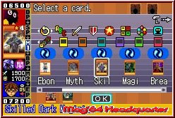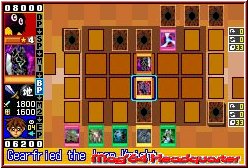 Wie schon erwähnt dient das Freie Duell zum einen um einen menschlichen Spieler herauszufordern, oder eben um gegen eine Vielzahl an CPU Gegnern anzutreten. Erinnert in seiner Machart eher an Stage Gameplay eines Prüglers. Denn auch hier spielt Ihr wenn man so will nacheinander gegen verschiedene andere Duellanten. Eingeteilt in verschiedene Level, sprich Schwierigkeitsgrade warten hier mehrere Gegner auf euch. Erst wenn man alle Gegner eines Levels besiegt hat wird man zum jeweils nächsten Level vorgelassen. Dabei ist das ganze so angelegt das Ihr im Verlauf Duellpunkte verdient, die man jederzeit in neue Karten investieren kann und somit das eigene Deck verbessern kann. Speziell um später im Modus Herausforderungen zu bestehen ideal gelöst. Alle Gegner eines Levels kann man dabei sofort anwählen und knackt man einen erstmal nicht, so einen anderen vorziehen kann und sein Glück versucht. Auch so hält man die Motivation oben und es dauert lange bis hier mal ein wenig Frust aufkommen kann, wenn man partout nicht weiter kommt. Danach folgt der Münzwurf und das Spiel beginnt. Am Spielprinzip selber hat man natürlich nichts verändert. Die Unterschiede zu anderen GBA Versionen sind eher im Handling und der Darstellung zu finden, auch wenn zu einem Nightmare Troubadour auf dem DS in Sachen Bedienung und Übersicht auch hier noch einiges fehlen sollte. Aber der dient zunächst ja auch nicht als Vergleich. Ein Teil der neuen Darstellung ist die Tatsache das alles auf einen Screen paßt und die einzelnen Reihen nicht abgeschnitten werden. Dazu sind Einblendungen der Charaktere samt HP zu sehen, so das auf Kosten der Detailfreude aber alle Elemente zu sehen sind. Auf dem Spieltisch beginnen beide Duellanten mit 5 Karten ihres Decks. Gespielt wird Rundenbasiert. Seid Ihr am Zuge könnt Ihr nun eine der verfügbaren 5 Karten ziehen und sie in die erste oder zweite Reihe legen, aus der danach die eigentlichen Aktionen folgen. Will man eine Spezialkarte legen nutzt man dafür die erste Reihe auf dem Tisch.
