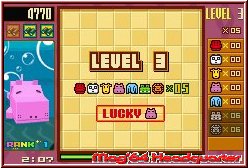 Dabei ist das ganze so angelegt das Ihr egal wo Ihr auf dem Bildschirm Reihen baut alles andere danach von oben nachrutscht. Und genau hier liegt der Kick und durchaus enthaltene Suchtfaktor dieses Spielprinzips. Das schnelle reagieren und finden der verschiedensten Anordnungen um mindestens 3 Symbole gleicher Art zu verbinden läßt den Spieler nicht mehr los. Unterstützt wird das ganze nun von verschiedenen Randerscheinungen. Am wichtigsten natürlich der Score. Denn sehr oft verbindet man ungewollt durch das nachrutschen neuer Symbole andere Reihen und bekommt Combos hin oder findet immer wieder neue Symbole die nun plötzlich nebeneinander liegen. Dazu ist vor dem Start eines Levels ein bestimmtes Tiersymbol zu sehen, das immer das aktuelle Bonustier darstellt. Ist also ein Löwe zu sehen, so bringen Reihen aus Löwen Symbolen mehr Punkte. Dazu wird bei Reihen dieses Tieres die Zeitanzeige schneller wieder aufgefüllt. So spielen sich die ersten Level relativ easy, egal auf welchen der Schwierigkeitsgrade, da euch der Zufallsgenerator immer eine gute Anfangsaufteilung gibt. Je weiter man kommt um so mehr muß man suchen und der Spieler merkt schnell das er fit sein sollte um mit der Zeit dran zu bleiben. Denn nichts macht einen hier hektischer als nur noch 10% in der Zeitanzeige zu sehen sind, weil man langwierig keine Reihen mehr findet. Ist man bei 10% der Leiste angelangt beginnt wie auf dem DS auch ein nervendes Geräusch und alle Symbole fangen an zu wackeln. Na dann ist die Hektik aber groß und die Schweißperlen machen sich breit. ;-) Nichts ist ärgerlicher als wenn man aufgrund der Zeit eines der anfänglich 3 Continues nehmen muß.