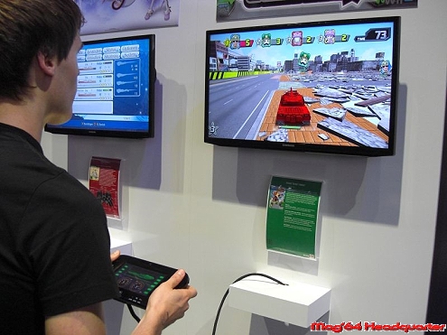 Zwar sollen auch alle Konkurrenz-Titel kurz erwähnt werden, aber unserer Webseite entsprechend, beginne ich mit den Themen rund um Nintendo. Big.N selbst war bekanntermaßen nicht vertreten, aber das WiiU Tablet sah man dennoch am ein oder anderen Stand. "Endlich den neuen Controller in den Händen zu halten" war unsere Devise, die Software war zunächst sekundär. Mit diesem Motto im Hinterkopf bahnten wir uns den Weg zum vermeintlichen Underdog der gezeigten WiiU-Spiele namens "Tank! Tank! Tank!" von Bandai. Nach wenigen Minuten Wartezeit war es soweit. Das WiiU Tablet war bereit sich von uns anfassen zu lassen. Das Teil ist wirklich angenehm leicht und der Bildschirm wirkt hochwertig, ähnlich wie das Gehäuse. Ungewohnt fühlte er sich dennoch an, weil er so dermaßen breit ist, eben wie, wenn man ein Tablet zum ersten mal quer in der Hand hält. Für viele andere sollte es anfangs ebenfalls fremd wirken und in der kurzen Zeit gewöhnt man sich nicht so schnell an etwas Neues. Nach eifriger Begutachtung des Controllers schauten wir uns das besagte Spiel an. Leider machte es sowohl optisch als auch spielerisch den Eindruck eines durchschnittlichen WiiWare-Games und nach unserer Erfahrung ist das "durchschnittliche WiiWare-Game" eher nicht im 70 oder gar 80%-Bereich angesiedelt. Man fährt durch 3D Areale und beschießt sich gegenseitig (Multiplayer) aus knuffigen Cartoon-Panzern während beschossene Gebäude, die alle ziemlich gleich aussehen, mit der immer gleichen Animation einstürzen. Im 4-Spieler-Modus mag das ganze deutlich mehr Spaß machen, aber anspielbar war der Titel nur allein mit zusätzliche CPU-Gegnern. Der Einsatz des Tablets war uns bei "Tank! Tank! Tank!" nicht ganz klar, da lediglich die typischen Cockpit-Anzeigen Alibi-mäßig auf dem Touchscreen flackerten. Dementsprechend machten wir uns schnell auf zu einem weit vielversprechenderen WiiU-Titel.