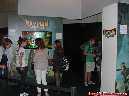 Einen asynchronen Mehrspielermodus par excellence gab es bei Ubi Soft und nannte sich "Rayman Legends". Die freundliche Mitarbeiterin erklärte uns kurz die Steuerung, drückte uns den WiiU Pro Controller und das WiiU Tablet in die Hand und los ging es. Während ich als Rayman klassisch durch das 2D-Level sprang, konnte Niklas per Touch-Steuerung die Umgebung beeinflussen. Dabei musste er Gegnern auf die Nerven gehen und Hindernisse beseitigen oder auf verschieden Art und Weise beeinflussen. Die Grafik war sowohl auf dem TV als auch auf dem Tablet sehr schön anzusehen (vergleichbar mit Rayman Origins HD) und das Leveldesign war extrem abwechslungsreich. An einer Stelle befand ich mich z.B. in einem kreisförmigen Labyrinth, das an allen Ecken und Enden mit Stacheln gepflastert war. Niklas musste das Labyrinth per Tablet (gehalten wie ein Lenkrad) nun so drehen, dass ich entsprechend der Gravitation von einer sicheren Plattform zur nächsten laufen/springen/fallen konnte, ohne die Stacheln zu berühren. Ein anderes Beispiel für die nötige Zusammenarbeit der zwei Spieler waren Plattformen, die erst aus der Wand fuhren, wenn man auf diese zusprang. Alle Plattformen waren mit Symbolen markiert und nur der Spieler mit dem Tablet konnte sehen, welche wirklich ausfahren würden und welche bloß Fallen waren. Entsprechende Fallen waren nur auf dem TV-Screen vorhanden, so dass Niklas diese für mich aussondern musste. Das ganze wurde zum Ende hin durch eine Sonic-artige Racing-Passage aufgelockert, bei der ich mit Vollgas, im Rhythmus der Musik durch einen Parkour rennen musste, während Niklas auf seinem Screen fleißig herumdrückte, um den Weg freizumachen und Boni erscheinen zu lassen. Das alles passierte innerhalb kürzester Spielzeit und wir sind uns sicher, dass es noch eine ganze Reihe solcher wahnwitziger Passagen im Spiel gibt. Daumen hoch für Ubi Soft! Der Pro Controller lag übrigens wunderbar in der Hand, schon nach wenigen Minuten hatte ich das Gefühl, dass ich das Teil schon ewig benutze. Ich könnte mir gut vorstellen, Titel wie Assassins Creed 3 damit zu spielen, denn das Tablet halte ich für solch klassische Spiele weiterhin eher für unnötig. Mein Zwischenfazit nach "Rayman Legends": Wenn die WiiU eine gute Mischung aus Titeln wie "Rayman Legends" (zuzüglich 1st Party!) und klassischen Spielen bietet, könnte Nintendo ein grandioses Line-Up am Start haben und einige Fans zurückgewinnen.