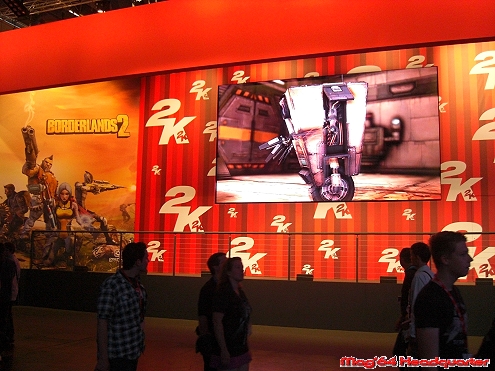 Während der Wartezeit am "Borderlands 2"-Booth ließ ich kurz meine typischen Lobenhymnen über Borderlands auf Niklas niederprasseln. Was nach dem Anspielen blieb war lediglich Ernüchterung. Und die konnte ich ihm nicht einmal übel nehmen, da es mir genauso ging. Da wäre zum einen die Tatsache, dass nur im Einzelspieler gespielt wurde. Ob eine Mehrspielerpartie doch irgendwie möglich gewesen wäre, weiß ich nicht, aber Fakt ist, dass immer eine komplette Gruppe gleichzeitig auf die Anspielstationen losgelassen wurde, so dass ein kurzes Briefing zu dem Thema durchaus möglich gewesen wäre. Nächster Kritikpunkt war der schwammige PC-Controller, der den Shooter-Aspekt schlechter aussehen ließ, als er eigentlich ist. Auch grafisch kam der Titel schlechter Weg, als der Erstling, was vermutlich an den Settings der PC-Version lag, die anspielbar war oder aber am Display. Zuletzt wäre da noch das 15cm kurze Kopfhörer-Kabel, das die recht kurze Anspielerfahrung negativ beeinflusste. Als Fan des Vorgängers waren dennoch die vielen tollen Neuerung zu erkennen, wie beispielsweise die neuen Gegnerarten, die mit verschiedensten Taktiken bezwungen werden mussten. Insgesamt 17 Skillpunkte konnten vergeben werden, so dass auch die deutlich komplexeren Skill-Trees inspiziert werden konnten. Ich wählte die Commander-Klasse und stattete meinen Charakter mit einem Geschütz aus, das ich über die ganze Map teleportieren konnte, um Gegner aus sicherer Distanz aufs Korn zu nehmen. Meine Vorfreude auf Borderlands 2 beruht nach der Demo dennoch eher auf zuvor angelesenen Infos und meiner Vorstellungskraft, als auf der astreinen Präsentation am 2K-Booth.