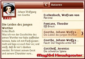 Über Auswahlleisten könnt Ihr Euch durch die 200 Meisterwerke der Weltliteratur „wühlen". Ohne weiteres lassen sich alle Werke nach Buchtitel, Autor oder Gattung suchen, was den Einstieg einfach macht und als entgegenkommendes Feature angesehen werden kann. Per virtueller Tastatur tippt Ihr den Wunschbegriff ein, die Software sucht dann von ganz alleine.