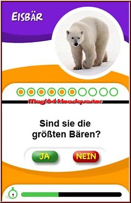 Kaum der Rede wert ist das aus zehn Fragen sich zusammensetzende Quiz, bei dem standardisierte Fragen auftauchen. Irgendwie kommt man sich veräppelt vor, wenn man bei einem Bären abverlangt bekommt, ob dessen Nachwuchs Kaulquappen seien… Alles weitere erübrigt sich spätestens zu diesem Zeitpunkt.