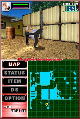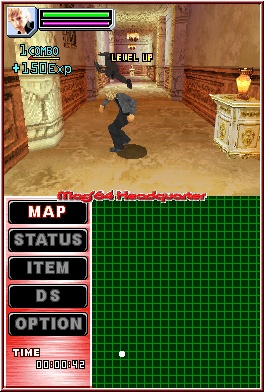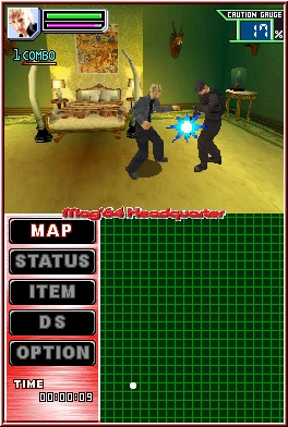 Im Übrigen wird der Touchscreen des Nintendo DS nicht genutzt - bis auf die Auswahl favorisierter Gegenstände innerhalb des Inventars. Wie oben bereits erwähnt, ist der Jungspund Alex tief verwickelt in das korrupte Geflecht von Darrius Sayle. Sein Ziel ist die Aufklärung, was sich aber als erschöpfend erweist. Nichtsdestotrotz macht sich Alex auf, das Abenteuer seines Lebens zu schultern: Das Gameplay während der Erkundung linearer Levels erweist sich bereits zu Beginn als recht einfallslos und einschläfernd. Merkwürdig animiert läuft Alex durch die 3D-Areale und wartet darauf einem Feind zu begegnen. Durch "X"- und "Y"-Kombinationen prügelt der Spion auf sein Gegenüber ein - jeder Gegner agiert gleich, selbst Endbosse sind doof wie Stroh und lassen jede taktische Note auch ansatzweise vermissen. Ein paar dutzend Schläge und der Widersacher segnet das Zeitliche… Der Witz bei der Sache ist, dass jedes Gebiet letztendlich nur durchlaufen werden muss - ein großer Bogen um Eure Feinde reicht und Ihr seid in Sicherheit. Mit dieser Taktik kann man die Spielzeit des Titels auf rund eine Stunde drücken und, bis auf die Bossfights, jeden Gegner umgehen. Der Einsatz von Rauchbomben ist nicht notwendig, überhaupt existieren Gegenstände, wie Metall fressende Cremes, die im eigentlichen Spiel keine Anwendung finden. Wenn dann in den kurzen Minispielen. Ab und an erhaltet Ihr Passwörter im Spiel, die wiederum Menüpunkte, wie den "Outfit-Wechsel", frei schalten. Eine kleine Übersichtskarte zeigt Euch den Aufenthaltsort Eurer Feinde oder verrät, wo Power-Ups zu finden sind. Trotz dem es Erfahrungspunkte pro besiegtem Gegner gibt und die daraus resultierenden Levelaufstiege Alex in seinen Statuswerten anheben, wirkt auch dieses Spielelement aufgesetzt, da es schlichtweg keine Auswirkungen für das Spiel bereit hält. Wenigstens hat man den Rollenspiel-Aspekt anzuwenden versucht - jedoch mit mäßigem Erfolg.