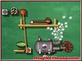 Zunächst warten 100 Levels auf ihre Lösung, wobei diese von insgesamt vier „Boss-Kämpfen" bereichert werden. Die Fertigstellung eines Roboters mit allerhand verbauter Technik ist ein weiteres Ziel, das sich die Streber vorgenommen haben – allerdings bedarf es für neue Aktionen eines erfolgreichen Kampfes gegen einen Zwischengegner. Wie besagte Auseinandersetzungen letztlich umgesetzt wurden, dürft Ihr gerne selbst rausfinden. Wir beschränken uns guten Gewissens auf die anspruchsvollen Versuchsanordnungen, die von Euch initiiert, kreiert und schließlich gestartet werden wollen. Es gilt beispielsweise einen Tennisball in eine Kiste zu befördern. Hierzu steht Euch eine vorgegebene Menge an Objekten zur Verfügung, die Ihr ohne Vorgaben im Feld verbauen dürft. Somit ergeben sich – vor allem in späteren Abschnitten – mehrere Lösungen für einzelne Bereiche. Die offene Handlungsweise gibt dem Titel das gewisse Etwas, das von anderen Software-Titeln oftmals gesucht, aber niemals gefunden wird. Aufgrund des experimentellen Charakters dürft Ihr die im Inventar befindlichen Gegenstände nach Lust und Laune auf den Bildschirm bringen und „verbauen". Hierzu werden Ketten an Zahnräder gelegt, Batterien für Stromgeneratoren miteinander verbunden und Bretter als Rollbahnen für Kugeln verwendet.