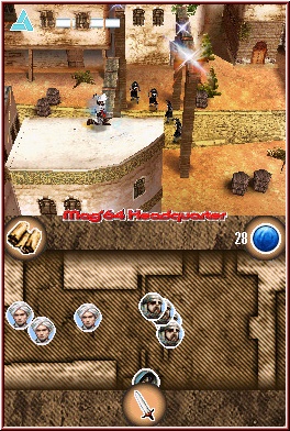 Als Ubisoft/Gameloft Produktion entwickelt, wurde das Spiel an den deutschen Markt angepasst, sprich man präsentiert euch ein komplett deutsches Spiel. Durchaus sinnvoll, spielt auch Text in Sachen Story eine große Rolle. Auch sonst gibt es bei den Rahmenbedingungen wenig zu meckern. Für einen Spieler gemacht, sorgt ein Batteriespeicher per Autosave für entspanntes Spielen in dieser Hinsicht. Dennoch gibt es hier später einen kleinen, aber nicht unwichtigen Punkt den man ansprechen muss. Aber dazu später noch ein paar Zeilen mehr. Nicht alltäglich ist in diesem Spiel natürlich die Story, die uns eben weit zurück in der Geschichte der Menschheit bringt. Ihr als Spieler erlebt hier die Vorgeschichte zu Assassins Creed, welcher wie schon erwähnt auf den NextGen Konsolen und dem PC erschienen ist. Zeitlich spielt das Game 1190 nach Christus. Der dritte Kreuzzug reißt das Heilige Land auseinander. Auf beiden Seiten ziehen mächtige Kriegstreiber die Strippen, um den Konflikt noch weiter anzuheizen. Ihr als Spieler übernehmt die Rolle Altairs, eines Mitglieds des Geheimbundes der Assassinen, der für sein schnelles und erbarmungsloses Zuschlagen berüchtigt ist. Altair muss einen "Kelch", ein mächtiges Artefakt mit der Macht die Kreuzzüge zu beenden finden. Nur mithilfe dieses Artefaktes ist es möglich die Wende für eine der Kriegsparteien einzuleiten. Hier greift Ihr wie schon erwähnt ein und macht euch auf die Suche nach dem Kelch.