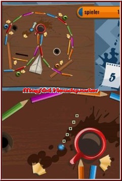 Weil der offensichtliche Umfang nicht sehr groß ist, gibt es nicht sonderlich viel, was wir innerhalb eines Reviews erklären könnten. Ok, ein detaillierter Blick auf jedes Minispiel wäre durchaus vorstellbar, würde aber nur wenig Sinn machen. Wir haben uns daher für einen knappen Rundum-Blick entschieden. Von allem etwas, aber nicht zu viel J. Weil Ihr jedes Spiel nach Gutdünken anwählt und es Euch überlassen bleibt, wann Ihr etwa „Tic Tac Toe" oder aber „Käsekästchen" spielt, ist die Reihenfolge nicht weiter relevant. Gemein haben alle zehn Minispiel-Vertreter, dass ihnen ein „Tutorial" zugrunde liegt. Eines, das durch wenige Texte gut in die Materie einführt und keine Fragen offen lässt. Ebenfalls erwarten Euch drei Schwierigkeitsgrade, je nachdem, wie groß die gewünschte Herausforderung nun ausfallen soll. „Tic Tac Toe" ließe sich eigentlich auch auf einem Blatt Papier spielen, dennoch wurde es in „Crazy School Games" integriert. Neun Felder, drei davon müssen in Reihe mit der Euch zugeteilten Farbe gefüllt werden. Auch eine Diagonale ist möglich. Unterhaltsam, aber nur für wenige Partien. Danach wird es langweilig. „Crazy Golf" ist da schon spannender und vor allem umfangreicher. Auf 18 Bahnen kickt Ihr mit Hilfe des Stylus einen Ball über einen aus Stiften und Tintenflecken gespickten Parcours. Das Ziel ist ein Loch im Tisch. Minigolf im Handtaschenformat eben!