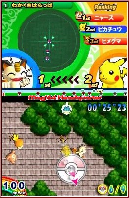 Da man sich das Geschehen nur aus der Vogelperspektive ansehen kann, brauchen die kleinen Racker keine fein strukturierten Gesichter. Man erkennt aber auch von oben, um welches Pokémon es sich handelt. Es sieht schon herzallerliebst aus, wenn sie ihre kleinen Beine schlenkern. Die landschaftliche Umgebung ist farblich sehr satt gestaltet, auch wenn der Bildschirmausschnitt sehr knapp ist, kann man das schön erkennen. Ansonsten hat man keinen unnötigen Schnickschnack eingebunden, was den Spieler unter Umständen von seinem Hauptanliegen ablenken könnte.