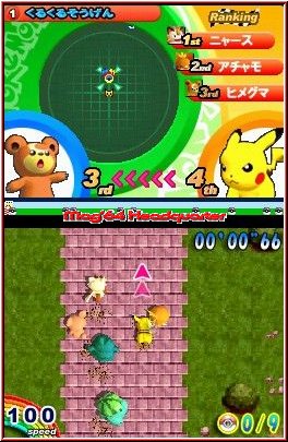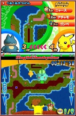 Ein Rennspiel ohne Fahrzeuge ist doch noch etwas ungewöhnlich. Aber das sind die Pokémon an sich ja auch schon. Aber die Grundidee des Spielprinzips macht dennoch viel Spaß. Was am Anfang noch recht beschaulich und einfach beginnt, wird im Laufe des Spiels zur richtigen Herausforderung. Was aber einen fetten Punktabzug zur Folge hat, ist die mangelnde Übersicht. Aus seinem Bildausschnitt ist die Lokation nicht übersichtlich und mit dem Radar bleibt die Umgebung auch dunkel. Das Radar dient wirklich nur zum Überblick der in der Nähe befindlichen Checkpoints und Items (Buttons und Ballons) aber wie die Gegend strukturiert ist, erfährt man nur den kurzen Augenblick in der Luft. Ich habe viele Rennen neu gestartet, weil ich mich schlicht und ergreifend verlaufen habe. Da leidet mit der Zeit der Spaßfaktor gewaltig.