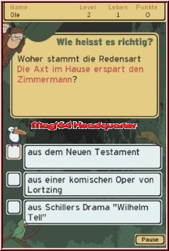 „Der Dativ ist dem Genitiv sein Tod" ist ein Griff daneben. Zusammenhanglose Software, dem der „wertvolle" Titel hätte entzogen werden müssen. Im Endeffekt hat man es mit lediglich vier verschiedenen spielerischen Einlagen zu tun, wobei nur das Sprachquiz mit den etwas mehr als 700 Fragen überzeugen kann. Alles andere ist nicht der Erwähnung wert und gehört schnellstmöglich unter dem Mantel des Schweigens begraben.