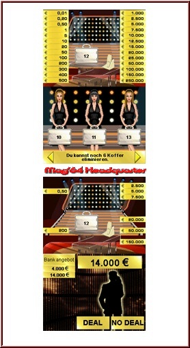 Im Hauptmenü angekommen, solltet Ihr Euch zunächst die "Einführung" zu Gemüte führen, denn hier lernt Ihr in unspektakulärer Weise die Regeln des Formats kennen: so viel Geld als möglich soll der Kandidat, im Idealfall also Ihr selbst, mit nach Hause nehmen. Dazu müsst Ihr Euch anfangs für einen Koffer entscheiden, von dem Ihr meint, dass er den Maximalgewinn enthalten könnte. Im Laufe der Runden fordert Euch der Moderator dazu auf, eine gewisse Kofferanzahl aus den verbliebenen auszuwählen und aus dem Spiel ausscheiden zu lassen. Welche Beträge sich dahinter verbergen, zeigt sich erst beim Öffnen der Aluminiumbehälter. Erfahrungsgemäß zeigte sich aber, dass eine hübsche Frau nicht unbedingt mit einer hohen Geldsumme gleichzusetzen ist ;-) . Habt Ihr Euch für einen Koffer, der seinen Inhalt preisgeben soll, entschieden, erfahrt Ihr dessen mit sich geführte Summe, die sogleich aus der Liste der noch verbliebenen Geldbeträge verschwindet. Wünschenswert ist es selbstverständlich, wenn Ihr möglichst viele niedrige Beträge aus dem Spiel kickt, um die Chance zu vergrößern, im anfangs gewählten Koffer den Maximalgewinn vorzufinden.