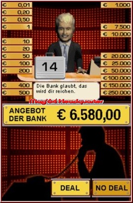 26 Koffer werden vor Spielbeginn mit unterschiedlichen Euro-Beträgen bestückt, die von einem Cent bis hin zu 250.000 Euro reichen. Im Idealfall gewinnt der Spieler also die Maximalsumme, was aber die absolute Ausnahme darstellt, denn gewisse Faktoren beeinflussen den Spielverlauf in enormer Weise. Ein Banker hat die Hand mit im Spiel und bietet zu gegebener Zeit gewisse Summen, die den derzeitigen Besitzer des Koffers von jenem „erlösen" und ihn dafür mit einer stattlichen Summe belohnen sollen. Je weniger Koffer noch im Spiel sind und je höhere Summen noch vorhanden sind, desto einträglicher ist auch das Angebot der Bank. Hört sich spannend an, ist es im Fernsehen zwischenzeitlich auch – auf dem Nintendo DS erwartet Euch aber ein anderes Bild der spielerischen Realität.