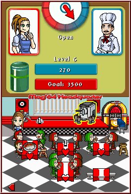 Ein Restaurant wirtschaftlich erfolgreich zu führen ist angesichts der zahlreichen zu beachtenden Faktoren mit Sicherheit keine leichte Aufgabe. Die Wahl des Standorts ist von besonderer Bedeutung, auch die Art der angebotenen Waren sollte gut durchdacht werden. Selbstverständlich macht es auch einen Unterschied, ob man schnelle Küche seinen Kunden anbietet oder auf deliziöse Feinschmeckerhäppchen setzt. In "Diner Dash" müsst Ihr Euch um das ganze Drumherum keine Sorgen machen, Euer Kopf bleibt frei, wirtschaftliche Bedenken können getrost unter den Tisch gekehrt werden. Wesentlich wichtiger und Hauptaugenmerk im Spiel ist das Bedienen der zahlreichen Restaurant-Besucher - als Einzelperson kann man da schon manchmal ganz schön in's Schwitzen kommen…