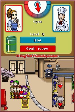 Aber zurück zum Geschehen! Die Familie will wirklich eine Nachspeise bestellen… Fantastisch für Euch und Euren Geldbeutel, da Euch jede Aktion wertvolle Punkte und zusätzliches Trinkgeld beschert, das wiederum zum Freischalten der nächsten Levels notwendig ist. Also geht es auf zur Dessertvetrine, welche die leckeren Nachspeisen bereithält. In der Zwischenzeit habt Ihr bereits eine Getränkestation, mit der Ihr dem frisch eingetrudelten Sechserpack große Freude bereitet, auch wenn das spätere Trinkgeld wohl eher dürftig ausfallen wird. Und wie es der Zufall so will, wirft in diesem Moment das Kleinkind sein Getränk um - aber der lokaleigene Mop ist bereits zur Stelle und kann von Flo elegant über den Boden bewegt werden. Mit der Zeit füllt sich Euer Lokal, Gäste kommen und gehen, unterschiedliche Wünsche wollen auf vielfältige Art und Weise befriedigt werden. Mit der Snackstation spendiert Ihr den Gästen kleinere Häppchen vorneweg. Ist gerade mal allzu viel zu tun, reicht der Griff zum Telefonhörer, um Verstärkung anzufordern, die Euch für kurze Zeit aushilft.