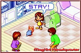Die 30 Tage Spielzeit für ein Welpen vergehen deshalb auch nicht in Echtzeit. Viel mehr sind es wieder alle möglichen Aktionen die der Spieler ausführt, welche diese in kleinen Sprüngen vergehen lassen. 10-15 Minuten dauert ungefähr ein Tag in der DS Version, wenn man normal agiert. Dabei spielt immer eine feste Zeitregel mit. Früh habt Ihr nie viel Zeit weil Ihr in die Schule müßt und nur der Nachmittag bis abends 21:00 Uhr steht euch für alle möglichen Aktionen zur Verfügung. Also auch hier das gleiche wie beim GBA Bruder von Dogz. Das Ziel im Spiel ist es nun nach und nach dem Hund Kommandos beizubringen, ihn natürlich zu Pflegen und damit Verantwortung zu übernehmen. Gerade für jüngere Gamer eignet sich so ein Spiel deshalb natürlich recht gut zu zeigen ob man Verantwortung übernehmen kann. Neben der Erziehung des Hundes selber steigern sich somit auch die Möglichkeiten für den Spieler. Geblieben und fast ein Ebenbild ist die Grafik und Sichtweise im Spiel. Die Iso Sicht schräg von oben findet man auch hier wieder vor und eignet sich gut für das Spielprinzip. Allerdings und das ist im Vergleich zu Nintendogs natürlich ein großer Nachteil ändert sich das ganze auch nicht. Egal ob Ihr den Hund wascht, streichelt oder bürstet, die Iso Sicht bleibt. Bildschirmgroße animierte Hunde bekommt man hier also nicht zu sehen. Dabei ist die Screenaufteilung klar geregelt. Die Spielaction spielt im Touch Screen, während Ihr im Top Screen ein Bildchen der momentanen Location seht, die Uhr und beim Gassi gehen eine Karte der Ortschaft in der Ihr lebt.