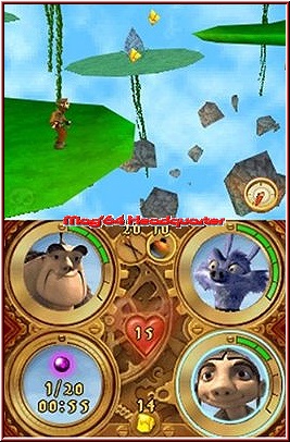 Hin und wieder warten Drachenwesen auf ihr „Game Over", die Anzahl an nervenden Feinden ist gering, häufiger ist das Augenmerk auf die angesprochenen Aufgaben gelegt, nicht auf das Ausschalten der Gegenspieler. Geratet Ihr dennoch einmal mit dem Gegenüber in Kontakt, verliert der jeweilige, gerade eben gesteuerte Spieler ein wenig seiner Lebensenergie. Eine Vorratsanzeige an Herzen gibt darüber Bescheid, dass Ihr in der Lage seid, helfend einzugreifen, per Stylus und das jederzeit innerhalb eines Levels. Checkpoints vereinfachen das Vorankommen und speichern den aktuellen Levelfortschritt, selbst wenn Ihr Euer virtuelles Leben aushaucht.