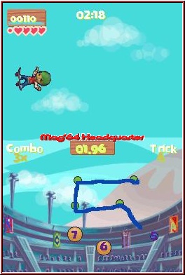 Zu Beginn des Spieles sind noch nicht alle Bereiche des Areals zugänglich, dies ändert sich aber im Laufe der Zeit. Anhand von Sprechblasen erkennt man, dass ein Schulkind eine Aufgabe parat hat – in der Regel lädt es Euch zu einem Duell innerhalb seines bevorzugten Spieles ein, beispielsweise zum Fußball. Mit dem Stylus steuert man seine Figur über den übersichtlichen Platz, mit einer doppelten Berührung des Screens vollführt Ihr einen Schuss, den der Torwart im Idealfall nicht halten sollte. Ergänzt durch Spezialbälle wird die Jagd nach dem Tor-Highscore zum kurzfristigen Spaß: Multiplikatoren, eine verbesserte Laufgeschwindigkeit sowie unhaltbare Schüsse gehören dann zum Repertoire der Spieler auf dem Feld. Richtig witzig ist das Autorennen aus der Vogelperspektive, das in entfernter Weise an einen vergangenen Kultracer erinnert, der bereits auf dem Ur-Game Boy veröffentlicht wurde. Dank zahlreicher Power-Ups haltet Ihr Eure Gegner im Zaum - klasse wäre es, wenn es ganze Meisterschaften gäbe, die Ihr austragen dürftet. Beim Völkerball gilt es die gegnerische Mannschaft auszuschalten. Gelingen tut das durch gezielte Würfe mit dem Touchpen. Jedoch solltet Ihr darauf achten nicht selbst getroffen zu werden, denn das könnte das Aus bedeuten. Selbst altbekannte Spieleinlagen, die man schon zum x-ten Mal gesehen haben dürfte, wurden „EA Playground" beigelegt. Unter anderen eine simple Abfolge von aufleuchtenden Spielfeldern nachzeichnen – wenig motivierend, wie wir finden. Ganz nett aber auch kaum inspirierend ist das Basketballspiel. Von Mulitiplikatorenfeldern aus versucht Ihr den Ball in die Reuse zu schicken und kassiert dafür Punkte. Wer am Ende des Zeitlimits besser abschneidet, kassiert die Murmeln. Während des Skatens hingegen gilt es Tricks auszuführen, die Ihr anhand eines Punkte-verbinden-Spielchens initiiert. Mehrere Tricks aneinandergereiht bedeuten fettere Combos und das logischerweise zusätzliche Trickpunkte. Beim Papierkügelchen-Schießen verwendet Ihr das in den Nintendo DS integrierte Mikrofon, um Ziele zu treffen, der Trampolinsprung bedeutet eine heiße Jagd auf Ballons. Besser gesagt sollt Ihr diese zum Platzen bringen. Selbst unfaire Mittel führen beizeiten zum Erfolg. Schließlich wartet die Insektenjagd auf fleißige Schulhofkönig-Aspiranten. Vier unterschiedliche Schmetterlingsarten bereichern die Landschaft, Bonusitems locken unter anderen die wundervollen Insekten an, andere halten bösartige Bienen fern – denn diese solltet Ihr unter gar keinen Umständen an Euch ranlassen.