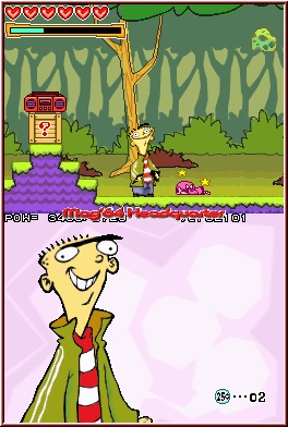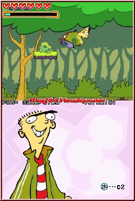 Die Levels unterscheiden sich nicht nur vom Setting her, das von der Baustelle, über einen Schrottplatz hin zu einem Wohnwagenplatz reicht, sondern auch vom generellen Aufbau. So gibt es Welten, die in linearer Weise durchlaufen werden müssen und wiederum Areale, die, durch Türen verbunden, in die Irre führen wollen. Was aber dann doch zu lasch verfolgt wurde, als dass man damit Eindruck beim Spieler schinden könnte. Witzig sind allerdings Verfolgungsjagden wild gewordener Kühe oder rasende Schweine, die nicht eher aufgeben, als dass sie nach einer Hetzjagd ermattet zu Boden sinken. Einige Spielabschnitte führen Euch in gewohnt horizontaler Weise durch den Level, andere indessen weit nach oben, über Baugerüste hinweg, an todbringenden, rollenden Kugeln vorbei. Um einen anständigen Highscore für sich zu beanspruchen, solltet Ihr fleißig die in der Gegend verstreuten Objekte aufsammeln, viel wichtiger sind aber die Items, welche Ihr per Touchpen aktivieren könnt. So erhaltet Ihr im Nu eine gehörige Portion Bonuspunkte, besiegt im Akkord ein ganzes Heer an Feinden, füllt in Sekundenschnelle Eure Spezialleiste, verbessert die Gesundheit des derzeitigen Charakters oder seid kurzfristig unbesiegbar. Ab und an warten Checkpoints darauf, dass Ihr diese aktiviert, um bei einem Lebensverlust von besagter Stelle weiterspielen zu können. Diese sind auch äußerst wichtig, da der Schwierigkeitsgrad wegen angreifender Vögel, weiter Abgründe und kaum zu meidender Hühner nicht gerade einsteigerfreundlich ist – im Gegenteil. Drei Minispiele könnt Ihr im „Mini-Spiel-Center" gegen Bares kaufen, wobei der Innovationsfaktor kein besonders großer ist. Ob Ihr nun überreife Pickel auf Eds Rücken drückt, Fleischstücke korrekt positioniert oder Euch in eine Kuchenschlacht eingliedert, bleibt Euch überlassen. Alle Minispiele sind nur des Spaßes wegen im Spiel enthalten, das Ziel ist der Highscore – einmal freigeschaltet, könnt Ihr diese so oft Ihr wollt wiederholen.