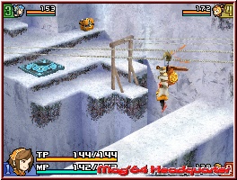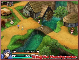 Auch in Echoes of Time dürfen natürlich dennoch die einführenden Sequenzen nicht fehlen und das Spiel startet innerhalb der Story auch damit. Auch wenn man sagen muss, das auch hier im Vergleich zu anderen Final Fantasy Spielen das ganze etwas abfällt, was Umfang und Qualität angeht. Was übrigens auch für die Sprachausgabe gilt, die weniger eingebaut wurde, als man dies schon gewohnt war. Aber es gibt weitaus schlimmeres und das Gameplay steht schon noch ganz oben auf der To Do Liste der Entwickler. So wie die Geschichte beginnt, startet auch das Spiel selber und Ihr als Spieler übernehmt den Helden das erste mal bei seinem Weg in den angrenzenden Wald auf seiner zunächst kleinen Reise zur Volljährigkeitsprüfung. So beginnt das Spiel erstmal wie ein gewöhnliches Rollenspiel und die Entwickler legen hier erstmal den Fokus auf das Kennenlernen der Grundsteuerung und der Sichtweise auf das Geschehen. Echoes of Time spielt sich dabei eher vergleichbar wie der 3er auf dem DS. Nichts mit führenden Monsterhorden oder Rundenbasierten Auftritten. Abspielen tut sich alles dabei in reinen 3D Umgebungen, die Ihr sofern von den Entwicklern vorgesehen, frei erkunden könnt. Begleitet wird das ganze von einer Iso Kamera, die aber recht dynamisch umgesetzt ist. Sprich sie zeigt euch zwar meist erhöht und schräg von der Seite. Je nach Location und Action auf dem Screen zieht diese auch mal auf, oder ändert die Höhe und den Winkel. Kleine Einschränkungen gibt es später beim Thema Steuerung in der 8Way Variante zusammen mit der Kamera, die dadurch gerne mal etwas schwammig und ungenau wirt. Muss man sich ein wenig mit arrangieren. Oftmals geht ein wenig die Tiefenwirkung unter und man ertappt sich in manchem Fehltritt ins Daten Nirvana. Steuern tut Ihr als Spieler dabei zunächst eine sichtbare Person, nämlich den Helden des Spiels. Klar aufgeteilt ist dabei auch das Screenhandling. Während der Top Screen die eigentliche Action zeigt, dient der Touch Screen für alle möglichen Menus, das Inventory, die Ausrüstungen und später auch sämtliche Shop Aktionen. Dennoch kommt der Top Screen natürlich nicht ohne Anzeigen aus. Neben der Lebensleiste und einem Gegenstück für die Specials, wartet hier auch eine kleine Kartenanzeige, die zumindest in den Kampfarealen sichtbar wird.