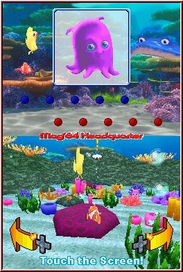 Das von "Altron" entwickelte Spiel bietet Euch ein Meeresabenteuer, in welchem der Touchscreen vollends zum Einsatz kommt. Auch das Mikrofon wurde sinnvoll im Spiel integriert, so dass das Konzept des Nintendo DS voll in Anspruch genommen wird. Dafür gebührt den Entwicklern ein Lob. Die Schattenseiten der Software sind vor allem die zusammenhanglose Aneinanderreihung der witzigen Minispiele sowie eine fehlende Story im Spiel. Das Prinzip der "Mario Party"-Reihe ist zwar ähnlich aufgebaut, das Spielkonzept wurde dank der Spielbretter und dem Drumherum aber wesentlich besser in Szene gesetzt. Über das Hauptmenü ("Weltkarte", "Mehrspieler", "Interaktives Riff", "Optionen") habt Ihr Zugriff auf das Programm, wobei der erste der vier aufgeführten Punkte das eigentliche Hauptspiel darstellt. Im "Interaktiven Riff" dürft Ihr für während der Minispielchen eingesammelte Münzen Objekte kaufen, welche Ihr dann im "Ozean", respektive heimischen "Aquarium" platziert. So habt Ihr die Möglichkeit diverse Hauptcharaktere im Spiel einzukaufen. Einen passenden Hintergrund gewählt (Korallenriff, Der Abgrund, Meeresboden, Minenfeld) und noch ein paar Wasserpflänzchen (Korallen, Schwämme, Tang, etc.) im Einkaufswagen verstaut - schon seid Ihr bereit, die Gebiete nach Lust und Laune zu gestalten. Der tiefere Sinn der Aktion blieb uns in der Redaktion zwar verborgen, dennoch werden jüngere Spieler kurzfristig Spaß haben. Je besser Ihr in den Minispielchen abschneidet, desto mehr Münzen kassiert Ihr auf Eurem Konto. Daher werdet Ihr fleißig üben müssen, um letztendlich eine stattliche Anzahl an Gegenständen frei schalten zu können. Im Zuschauer-Modus betrachtet Ihr dann Euer vollendetes Werk und schaut dem Meeresgetier beim Schwimmen zu oder zoomt nach Lust und Laune in den Bildschirm hinein.