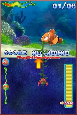 Bella, der Seestern, schickt im "Möwenmanöver" Niels an den Start, der durch geschickte Flugeinlagen den attackierenden Möwen ausweichen muss. Per Touchpen fegt Ihr die kreischenden Biester vom Bildschirm und beschert ihnen somit das Spielende. Durch gekonntes Spielen erhöht Ihr Euren Highscore, Euer Konto wird Euch vorausschauendes Agieren im Spiel danken. Die dadurch erspielten Münzen dürft Ihr dann für das oben beschriebene "Interaktive Riff" verwenden. In Jacques "Minenfeld" begegnet Ihr einer Menge herumtreibender Minen, die an Ketten am Meeresgrund befestigt sind. Durch einen geschickten Schnitt mit dem Touchpen in eine bestimmte Richtung löst Ihr die Mine vom Seil und habt somit freie "Fahrt". Mit fortgeschrittener Spieldauer können Minen nur noch durch mehrfache Schnitte in unterschiedliche Richtungen von der Kette getrennt werden. Auffällig ist die Tatsache, dass die Entwickler von "Findet Nemo - Flucht in den Ozean" durchaus Mut in der Minispielerstellung bewiesen haben. Es macht also Spaß mal eben eines der Minispiele anzutesten - auch wenn die Laune nicht besonders lang anhält!