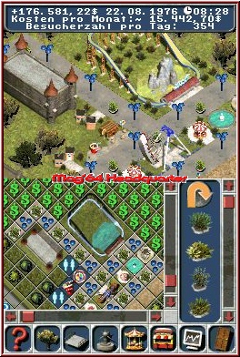 Zu Beginn ist Euer Park leer – von einem „Freizeitpark" kann man bislang sowieso noch nicht sprechen, im Gegenteil. Alles was Ihr erkennt, ist unerschlossenes Land, von Wiesen und Wäldern gesäumt. Zunächst gilt es also, mit der Planierraupe das Land einzuebnen und in einen bebauungsfähigen Zustand zu transformieren. Ratsam wäre es, erste Wege zu verlegen. Ob das nun Betonplatten, asphaltierter Weg oder Steinplatten sind, bleibt Euch und vor allem dem Geldbeutel überlassen. Logisch, dass die teureren Dinge mehr Eindruck beim Publikum schinden. Kann also gut sein, dass sich ein edler Park als Quotenbringer erweist, wohingegen ein günstig zusammen gefriemeltes Ausflugsziel eher weniger gut bei den Besuchern ankommt. Zu Beginn kann Euch das Ganze schnell über den Kopf wachsen. Zum einen, weil Ihr das Geschehen auf dem Touchscreen aus der Vogelperspektive betrachtet, zum anderen, weil die zu bedienenden Buttons doch in stattlicher Anzahl vorhanden sind. Nach einiger Spielzeit legt sich das Katastrophenszenario jedoch und der Durchblick scheint gewahrt.