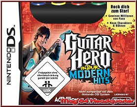 Zwischenzeitlich ist das Trio der „Guitar Hero"-Serie auf dem Handheld perfekt. Zwei Teile der Serie haben wir Euch bereits vorgestellt, den dritten haben wir uns in den letzten Tagen zu Gemüte geführt und müssen erneut feststellen, dass die Änderungen im Vergleich zu den Vorgängern marginal sind. Bis auf die Songauswahl hat sich kaum etwas geändert. Moderne Musikhits – das ist das Motto von „Guitar Hero - On Tour - Modern Hits". Und in der Tat sind die Songs derartig aktuell, dass kaum echte Ohrwürmer mit vertreten sind. Solche hätten wir uns aber schon erwartet. Es bleibt also alles beim Alten – nur ist der Ohrwurmfaktor dieses Mal etwas geringer...