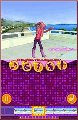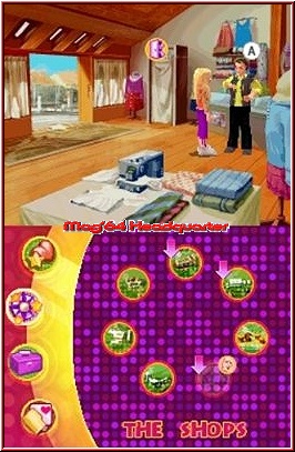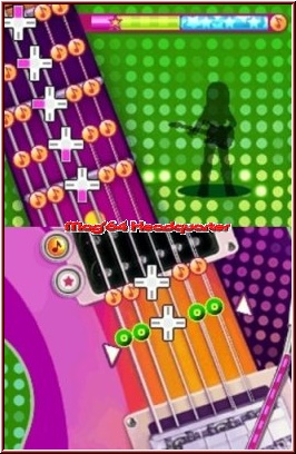 Immer und überall wo Hannah anstatt Miley erwartet wird (beispielsweise bei einem Auftritt!) finden sich Umkleidekabinen, die Ihr betreten könnt. Als Hannah ist es Euch nicht immer möglich, sich komplett frei zu bewegen, da überall Paparazzi auf den besten Schnappschuss warten – möglichst in delikater Montur oder in peinlicher Situation. Mit diversen Outfits, die nach und nach zugänglich werden, schmückt Ihr die zwei Protagonistinnen in ein- und derselben Person. Speziell für die Videoaufnahmen aber auch zur allgemeinen Erheiterung dienen unzählige Kleidungsstücke, die in Farbe und Form variiert werden dürfen. Weil das gewöhnliche Umherlaufen mit der Zeit ein wenig eintönig wird, solltet Ihr Euch nach und nach auf die Musikinstrumente versteifen, die allerlei Möglichkeiten bieten, ein wenig Abwechslung in das Geschehen zu bringen. Auch wenn „Hannah Montana – Music Jam" ohne Gitarrenaufsatz wie bei „Guitar Hero – On Tour" daherkommt, ist das Spiel mit der Klampfe unerlässlich und macht auch durchaus auch Spaß. Ob Rhythmus-, Bass- oder Sologitarre: Im rechtzeitigen Moment solltet Ihr den Touchpen über den Touchscreen sausen lassen und im selben Augenblick die angezeigte Tastaturrichtung drücken. Schon spielt Ihr den korrekten Ton und sammelt fleißig Erfolgspunkte.